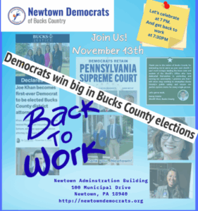 Newtown Democrats Monthly Meeting – November 13th, 2025 7PM (Social Gathering) 7:30 PM (Meeting Start)